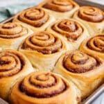 Store any leftover cinnamon rolls in an airtight container at room temperature for up to two days or refrigerate for about a week. The dough stays soft, and the icing will soak in beautifully over time.