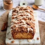 This Vegan Cinnamon Swirl Banana Bread with Cinnamon Crumble is a moist and flavorful loaf perfect for breakfast or a cozy snack. It features ripe bananas, a delightful cinnamon-sugar swirl, a crunchy cinnamon crumble topping, and a smooth vanilla glaze, all made without any animal products. Easy to prepare and baked to perfection, it is an inviting vegan treat bursting with warm spices and sweetness.