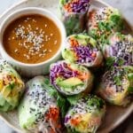 These Vegan Rice Paper Rolls with Spicy Peanut Sauce Recipe deliver everything you want from a fresh, light meal: bright colors, satisfying textures, and flavors that dance on your palate. Whether it’s a quick lunch, a healthy dinner, or an impressive party treat, these rolls never fail to bring joy and nourishment to the table. Plus, their beautiful presentation always sparks conversation and compliments—trust me, I know from experience!