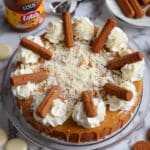 PrintWhite Chocolate Biscoff Swirl No-Bake Cheesecake Recipe