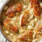 Keywords: Whole30 chicken, creamy garlic chicken, dairy-free creamy chicken, coconut cream chicken, paleo chicken recipe, low carb chicken, pan-fried chicken